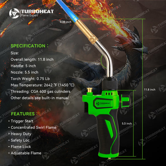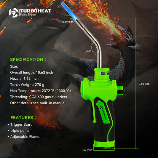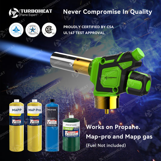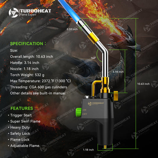 Handy Cyclone Propane Torch Head Turbo Flame Self Ignite Small Welding Torch Fuel on Propane MAPP MAP Pro Gas Cylinder Tank Push Button Trigger Start Mini Nozzle Soldering Brazing Glass Work