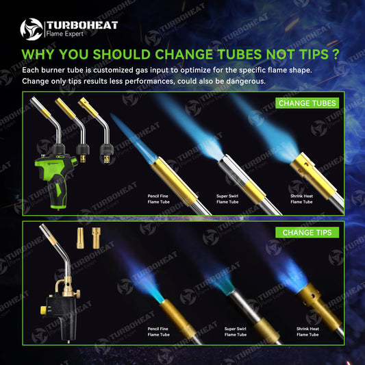 TH-2011 Metal Handle Interchangeable Tube Gas Welding Torch Kit,3 Tubes (Swirl, Pencil, Shrink Searing),Fuel MAPP MAP PRO Propane,Auto Trigger Start, Soldering Brazing Cooking,Heavy Duty